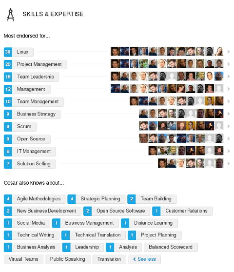 Profissionalmente, sinto-me realizado quando vejo que meus pares reconhecem minhas habilidades no Linkedin (exemplo abaixo) ou quando recebo a recomendação de algum colega no portal.